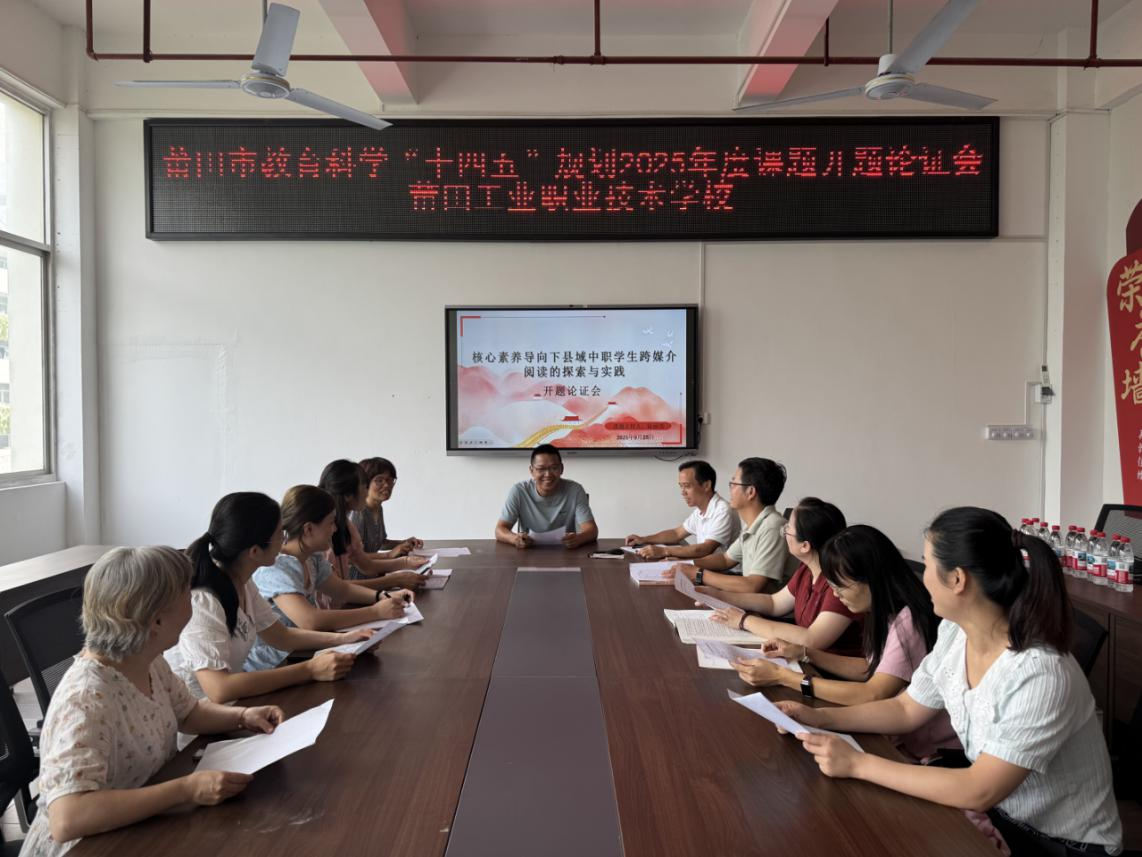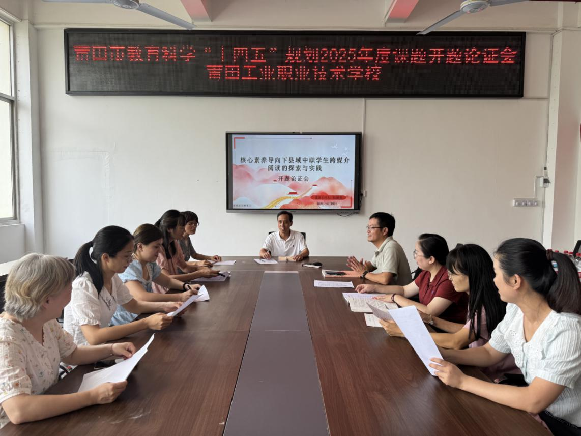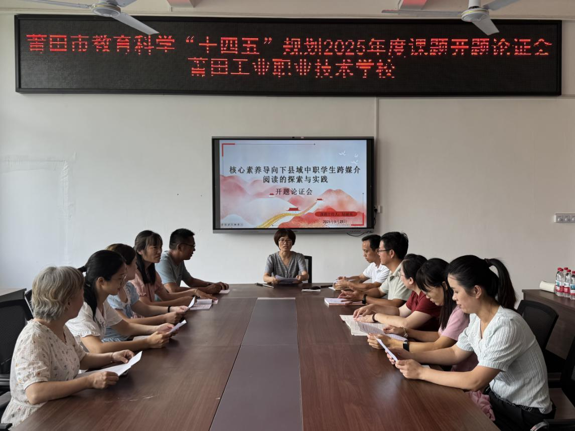 2025年9月25日上午,莆田市教育科学“十四五”规划2025年度立项课题《核心素养导向下县域中职学生跨媒介阅读的探索与实践》(编号:PTJKT25200)开题论证会在我校党员会议室隆重举行,课题组成员和部分青年教师共同参会。莆田工业职业技术学校副书记林金文、莆田市职业院校首届语文教学名师莆田海峡职业中专学校高级教师俞清秀、“阅读莆田”推广大使莆田市外国语学校教科室主任郑桂珊、莆田第二十五中学高级教师林志扬、莆田市中职财经商贸学科指导组成员高级教师黄佳红等领导和专家,对课题开题论证进行详细指导。